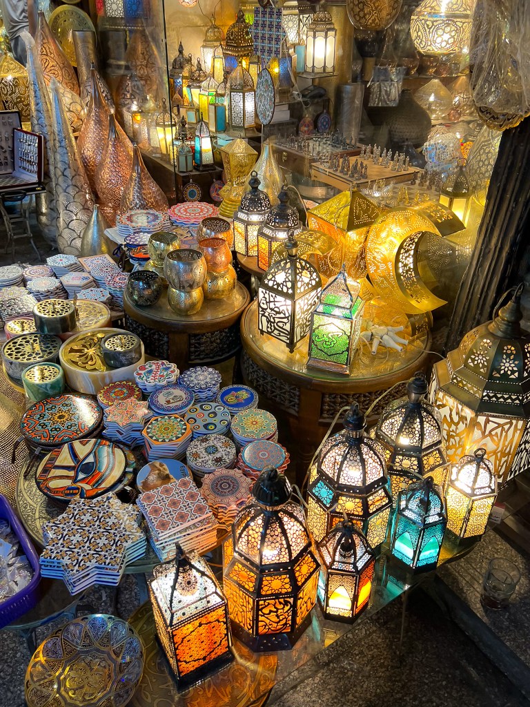 You can find actual lanterns and things that approximate lanterns everywhere, although the best selection is in the area known as Taht al-Rabaa’, in the old city of Cairo between Port Said Street and Bab Zuwayla, and then continuing into the tentmaker’s market, Khan al-Khayamiyya.